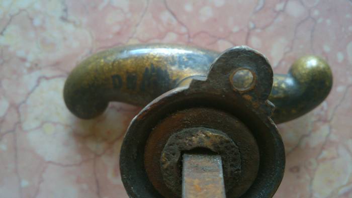 - Olive auf Platte mit Stift, massiv Messing, Bergezustand, 10 St. vorh.